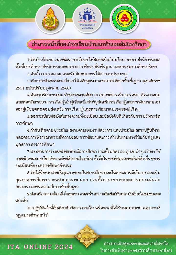 อำนาจหน้าที่ของโรงเรียนบ้านแกหัวแฮดส้มโฮงวิทยา |